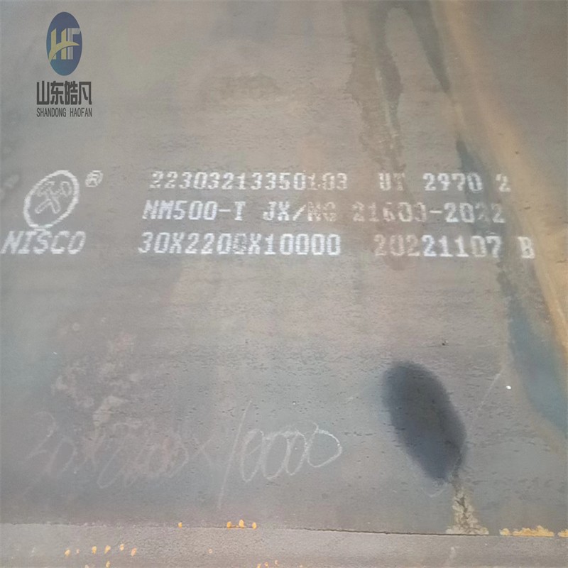 耐磨钢板的技术参数显示,其硬度达到HRC标准,合金碳化物在高温下保持较高的硬度,具有很好的抗氧化性能,在500℃以内完全正常使用。此外,NM500高强度耐磨钢板具有较高的抗磨损能力,布氏硬度值达到500(HBW),主要应用于需要耐磨的场合或部位,以保护设备延长寿命,减少维修和停机时间,从而降低资金投入。